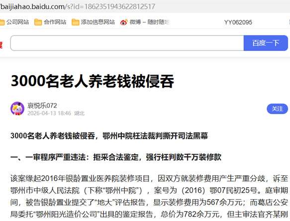 3000名老人养老钱被侵吞,鄂州中院枉法裁判撕开司法黑幕
